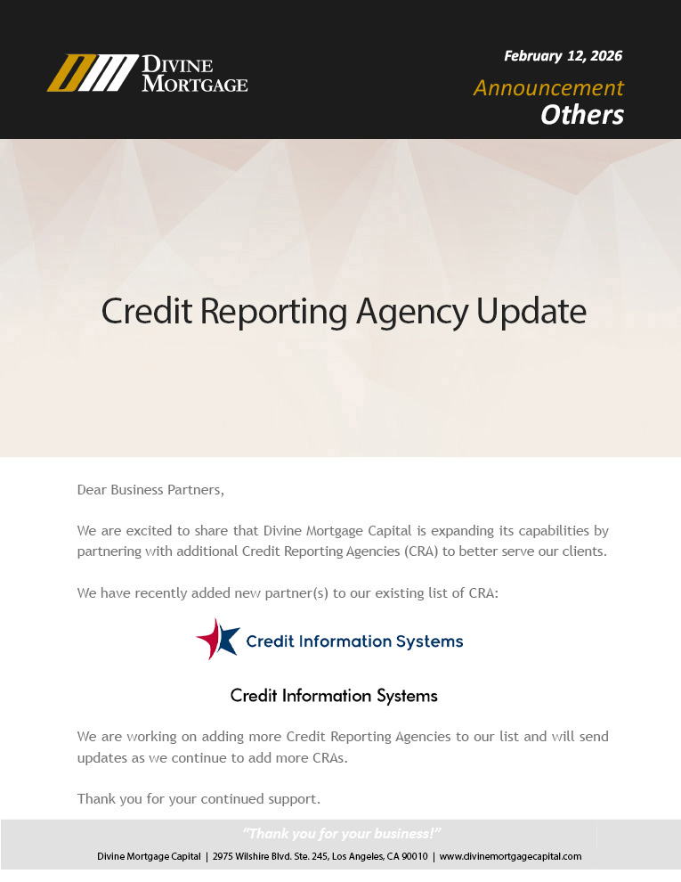 Credit Reporting Agency Updates